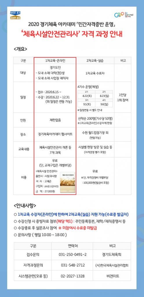 경기체육아카데미 체육시설안전관리사 자격 과정 안내