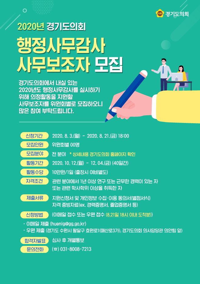 2020년 경기도의회 행정사무감사 사무보조자 모집