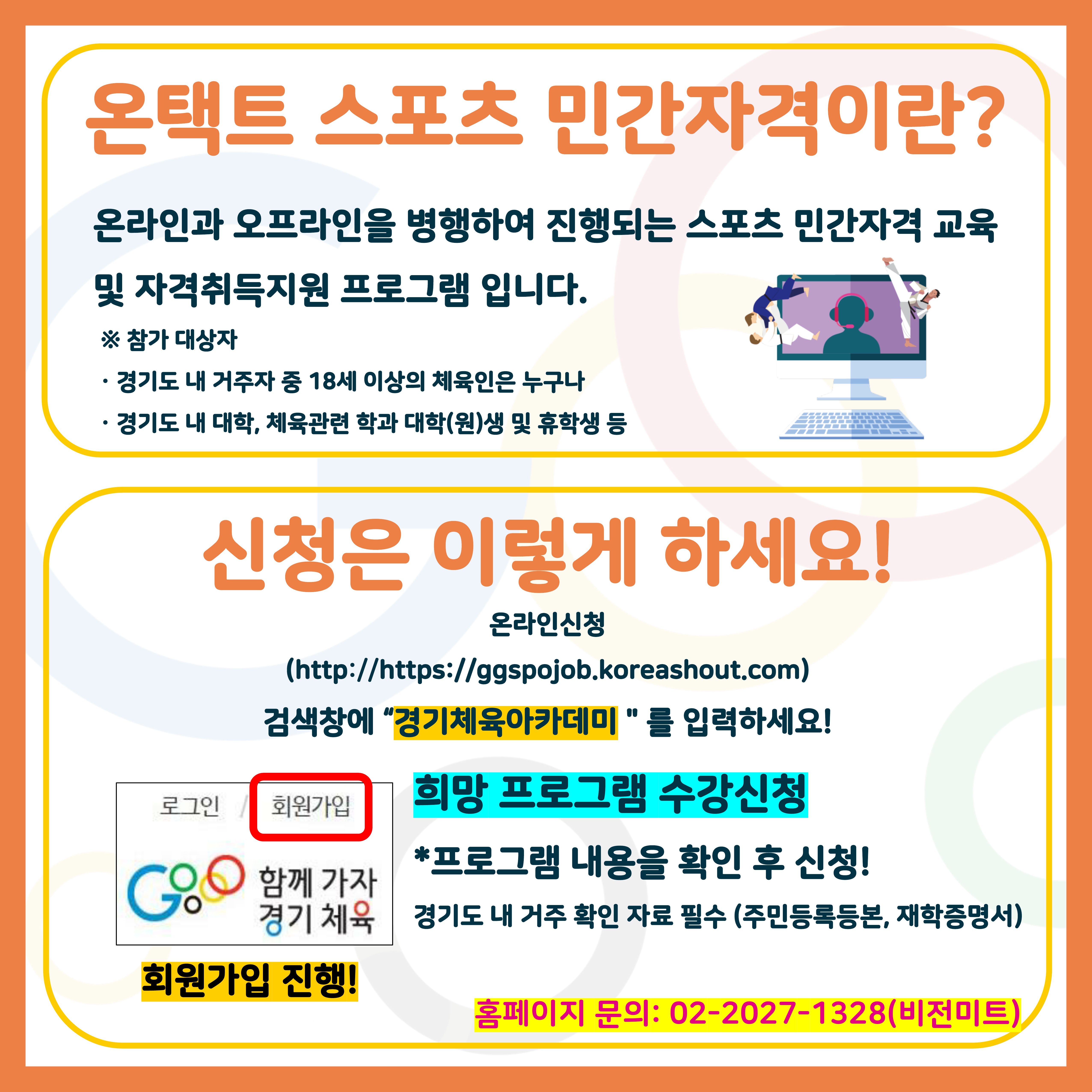 [카드뉴스] 온택트 스포츠 민간자격 지원 사업 안내