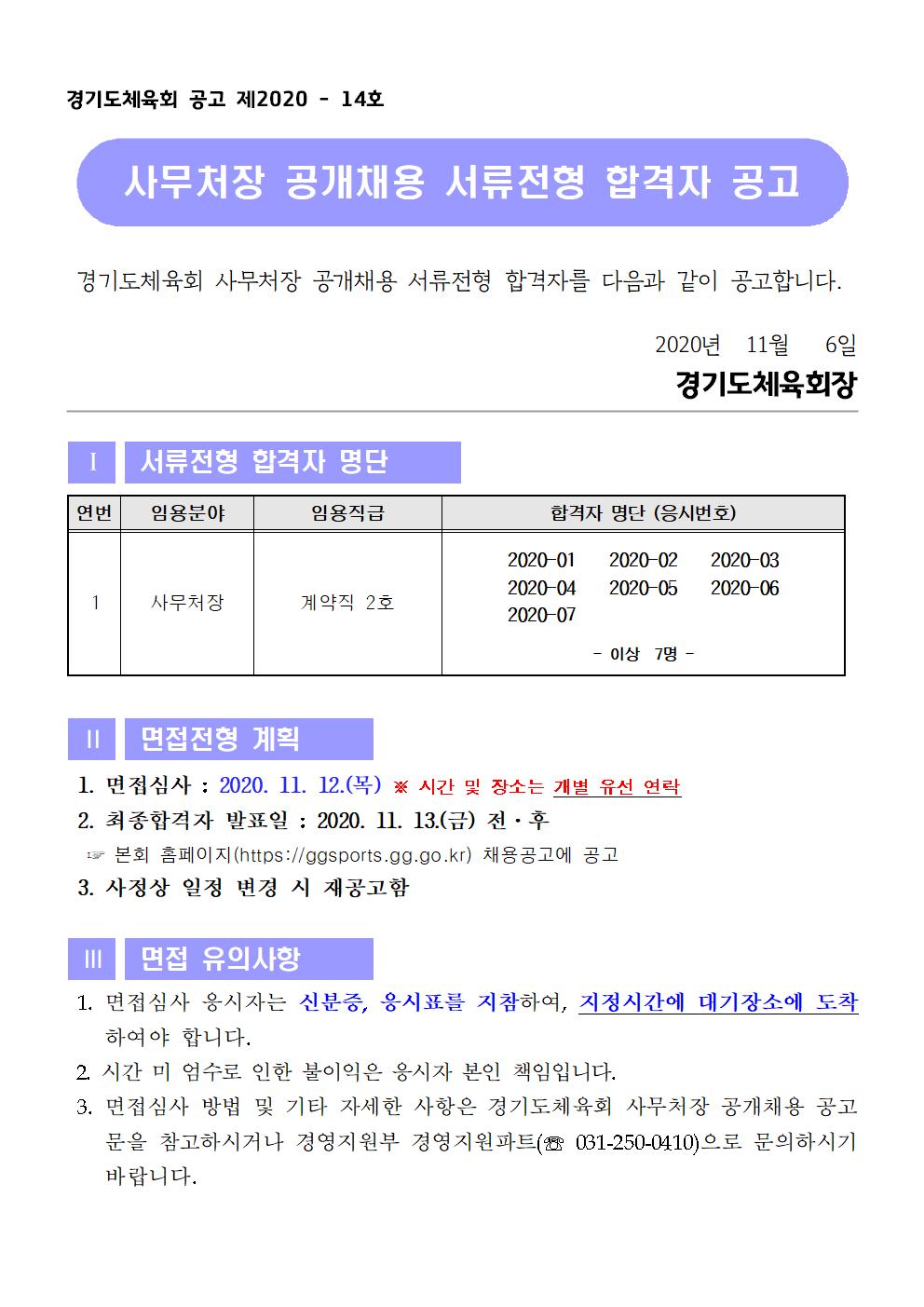 2020년 12월 생활체육지도자 채용공고(구리시)