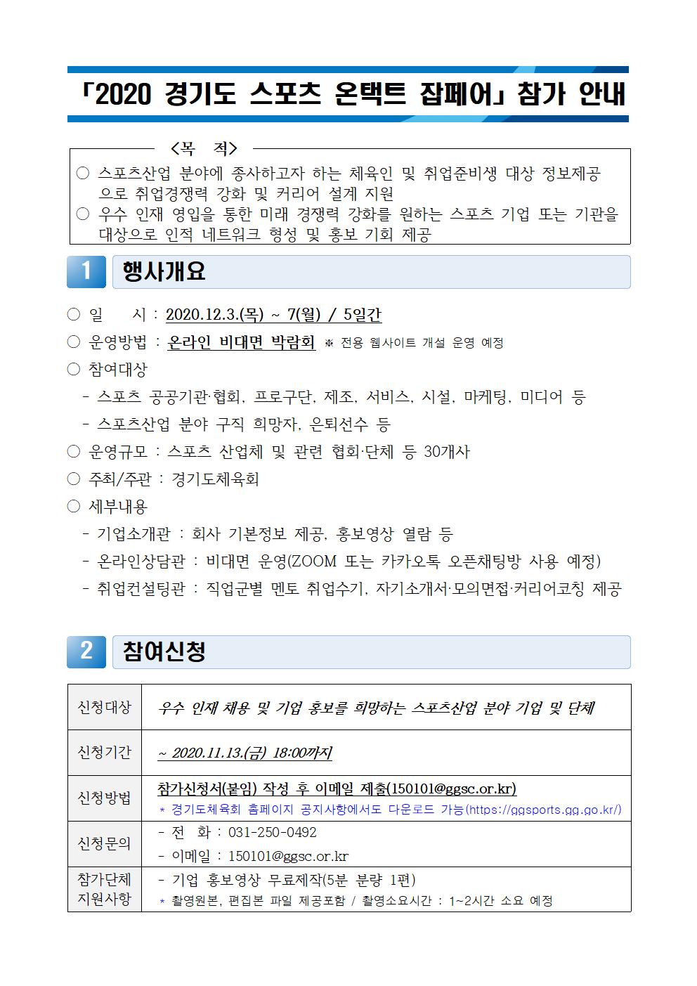 [마감]2020 경기도 스포츠 온택트 잡페어 개최 안내 및 참가신청서