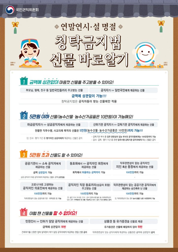 연말연시·설 명절 청탁금지법 선물 바로알기 안내
