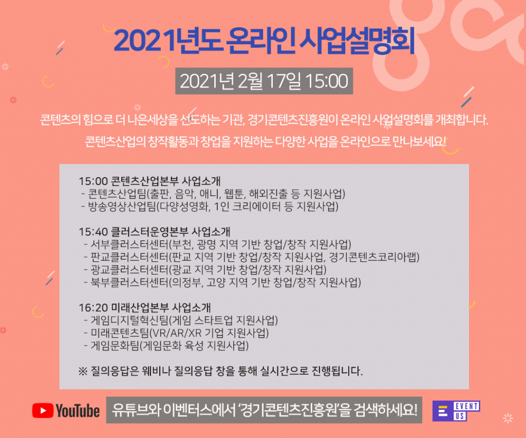 - 질의응답 : 이벤터스 웨비나(웹+세미나) 질의응답 창을 통해 실시간으로 진행