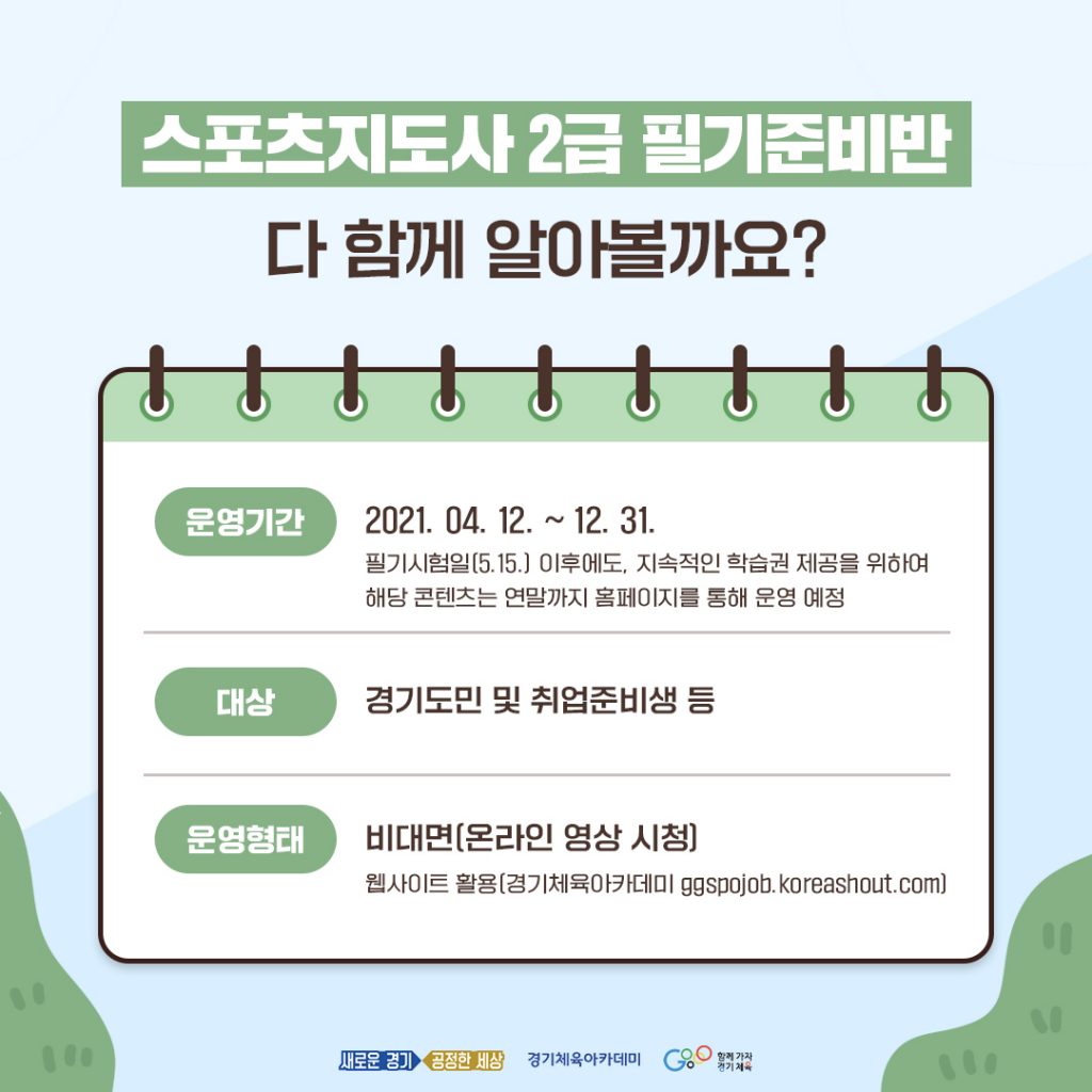 [공지] 2021 스포츠지도사 2급 필기 준비반 온라인 강의 오픈 알림