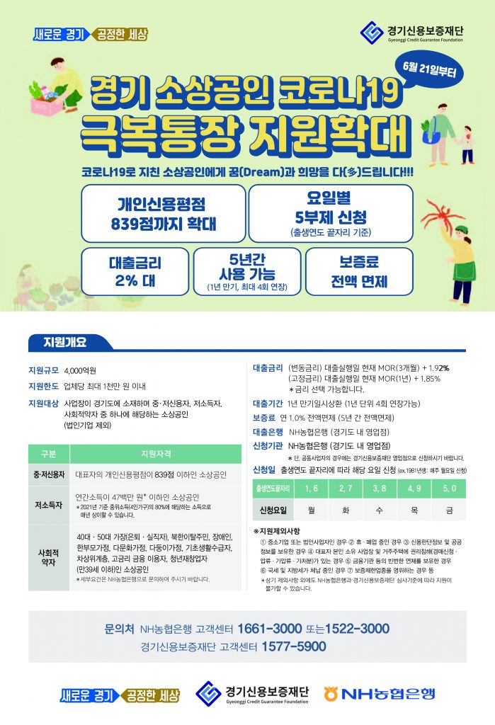 「경기 소상공인 코로나19 극복통장」 알림