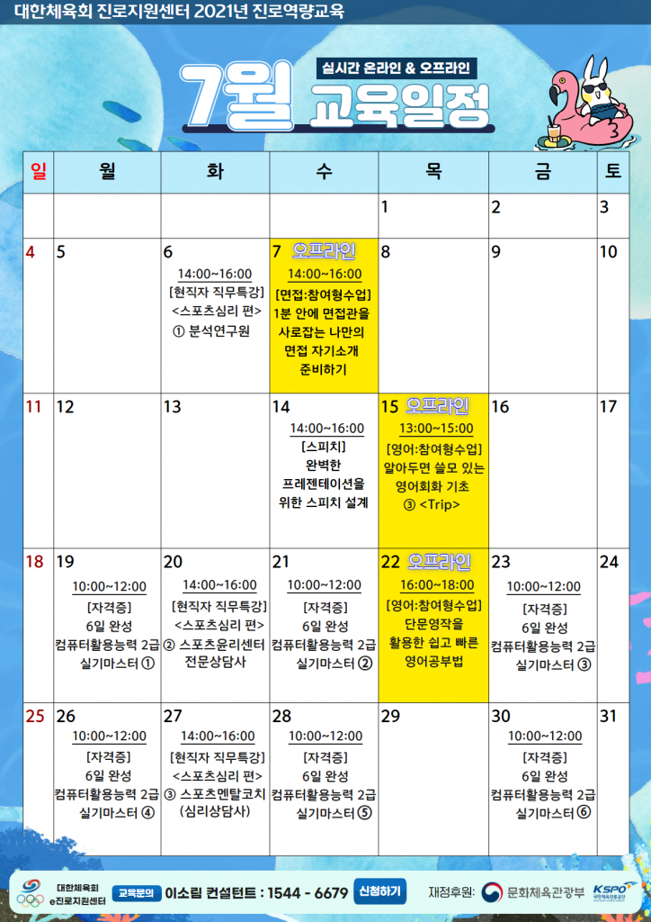 대한체육회 진로지원센터 7월 교육 프로그램 알림