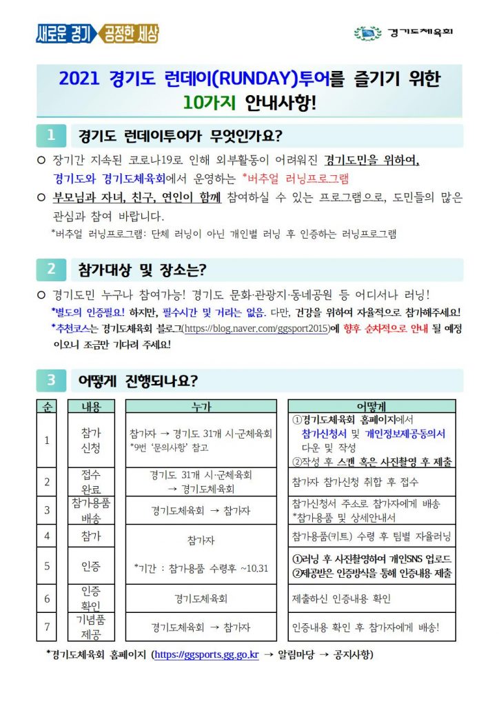 2021 경기도 런데이(RUNDAY)투어를 즐기기 위한 10가지 안내사항