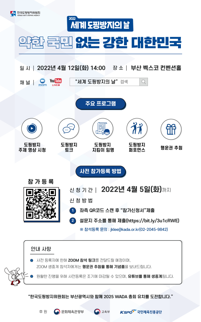 ·행사명: 2022 세계도핑방지의날 기념식(온·오프라인 병행)