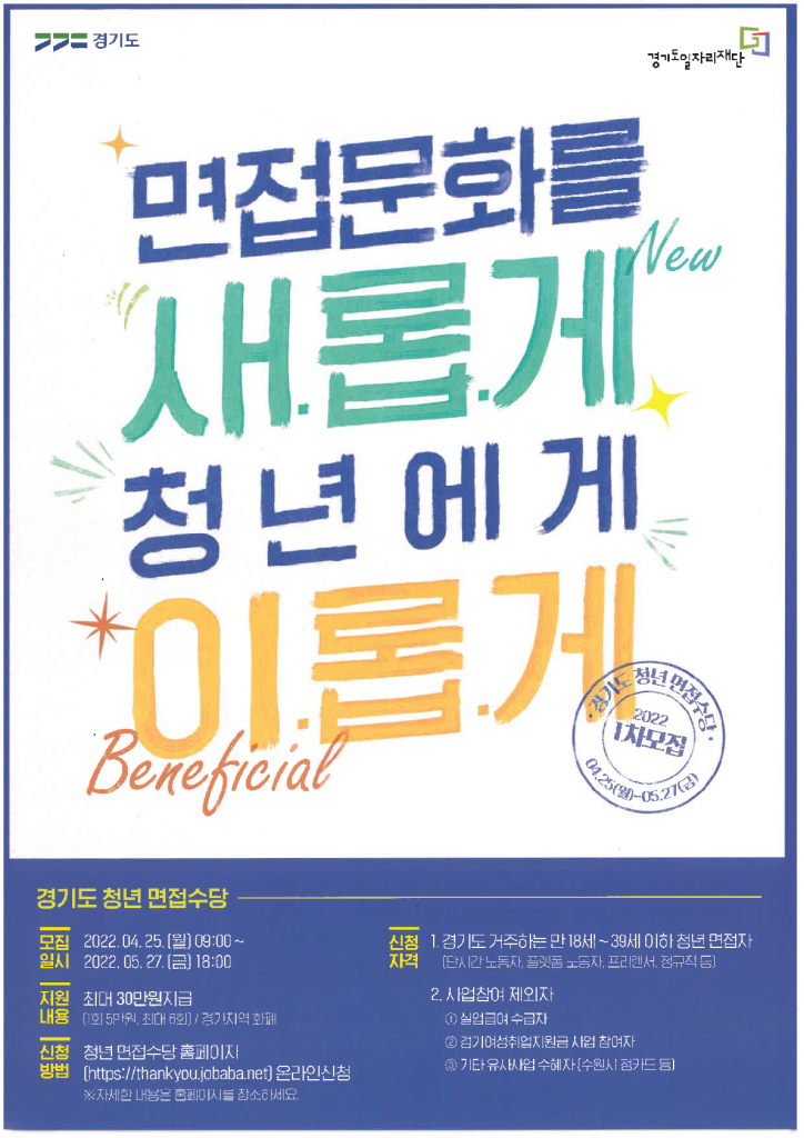 2022년도 제1차 경기도 청년 면접수당 모집 알림