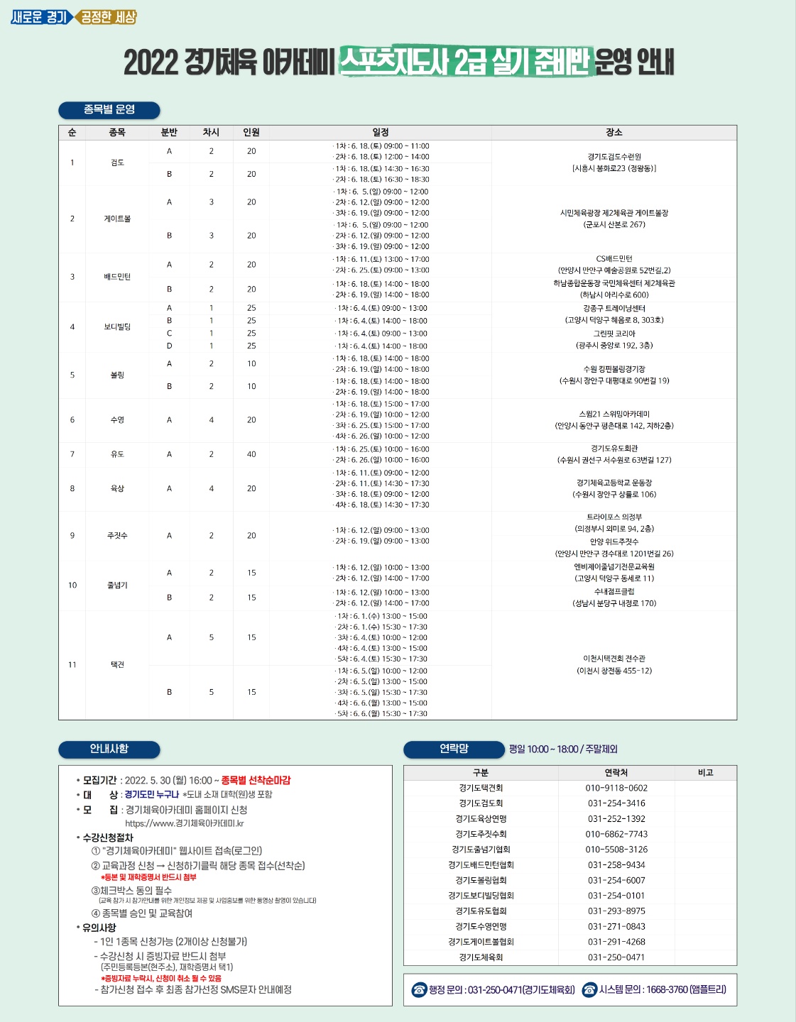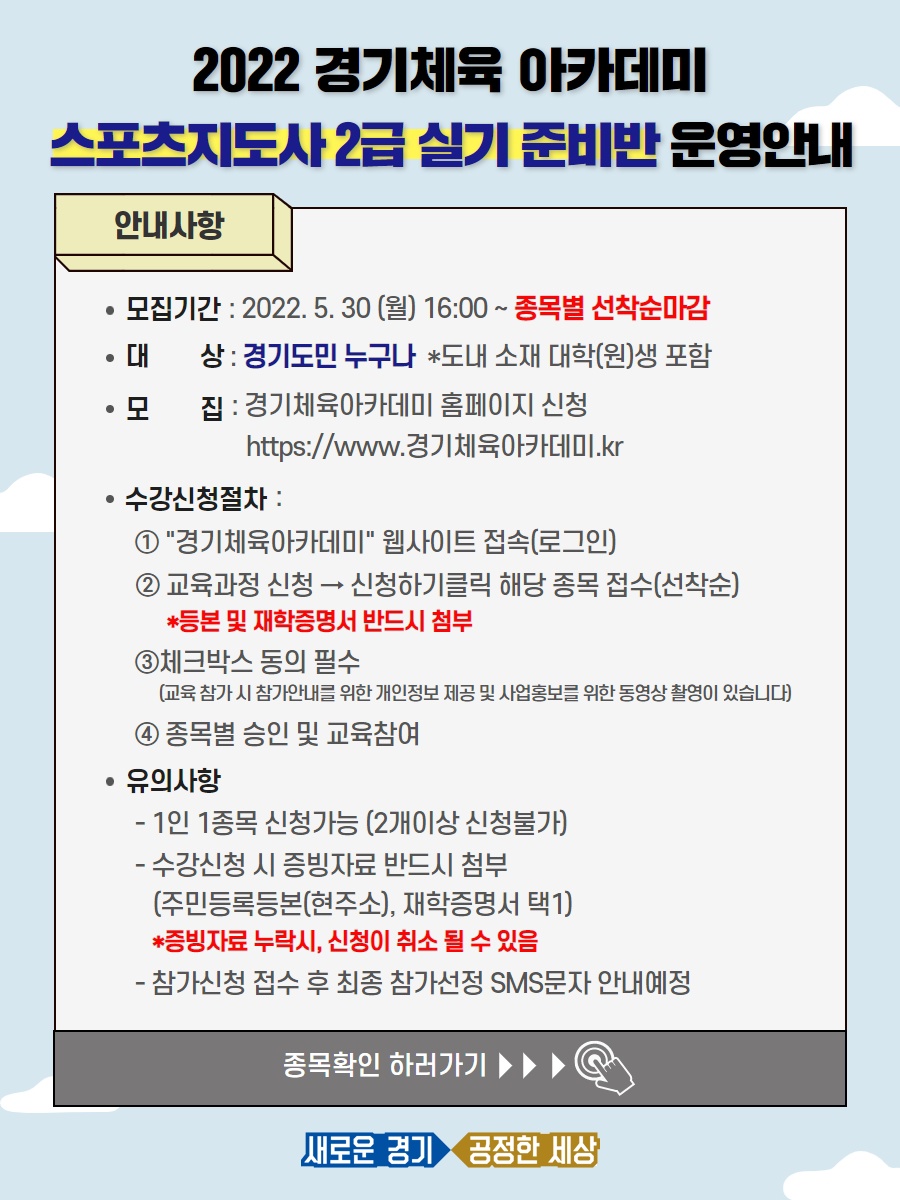 2022 경기체육 아카데미 스포츠지도사2급 실기 준비반 운영 알림