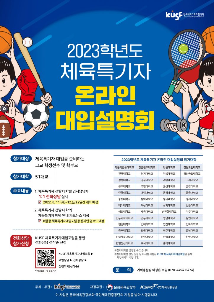 – 체육특기자 선발 대학별 입시담당자 1:1 전화상담 실시(`22.8.11.(목)~12(금), 2일간)