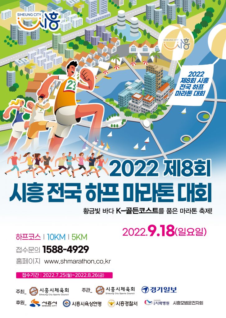 가족애(愛)를 회복하고 전국의 동호인이 참여하는 대표적 스포츠브랜드로의 육성을 목적으로 하는 ‘2022 제8회 시흥전국하프마라톤대회’가 오는 9월 18일 개최됩니다.