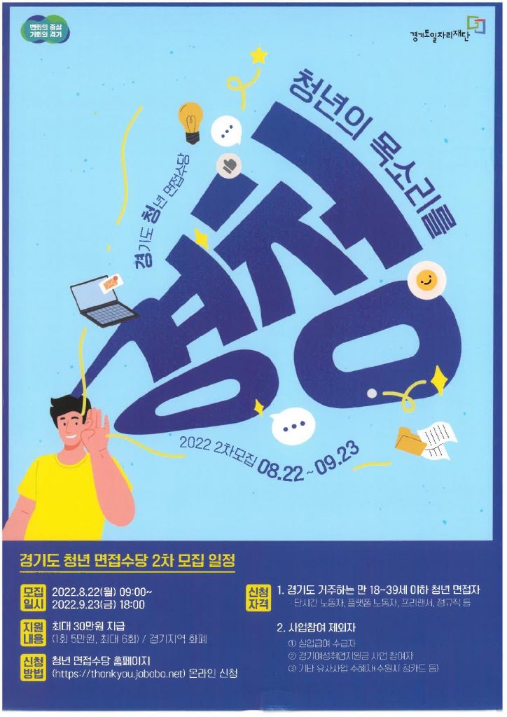 [경기도일자리재단] 2022년 제2차 경기도 청년 면접수당 모집 알림