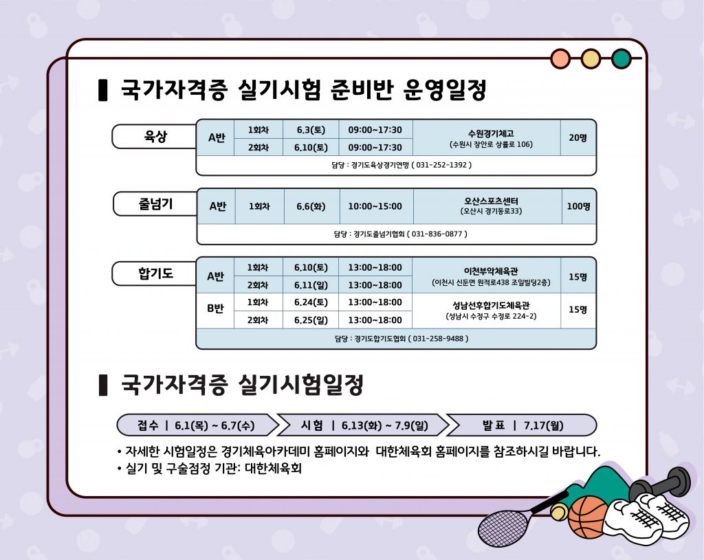 [카드뉴스] 2023 경기도체육아카데미 국가자격증 실기시험 준비반 안내