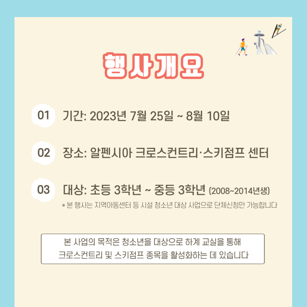 ㅇ 행사명: 2023년 행복나눔 하계스키교실