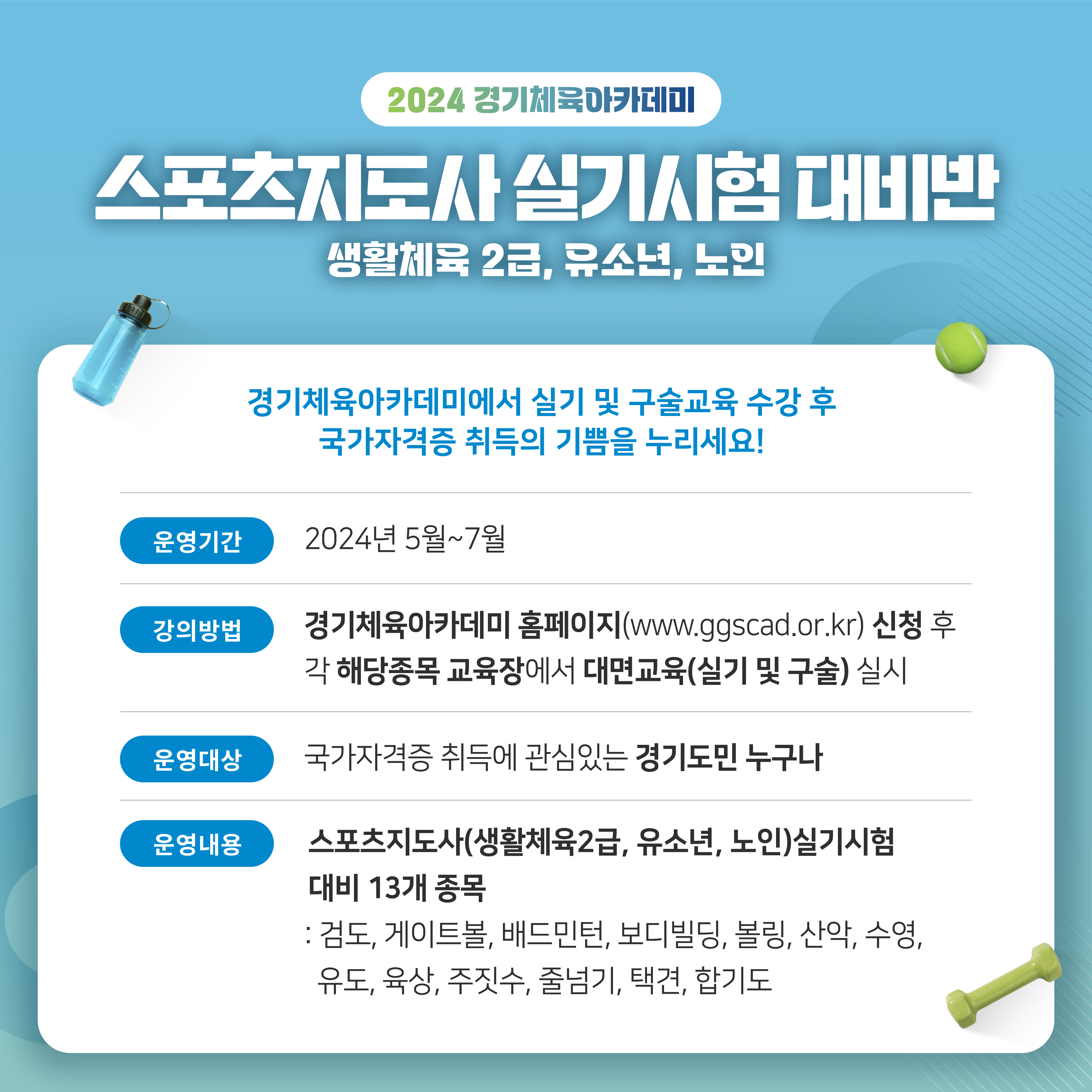 2024 경기체육아카데미 스포츠지도사 실기시험 대비반 운영 알림