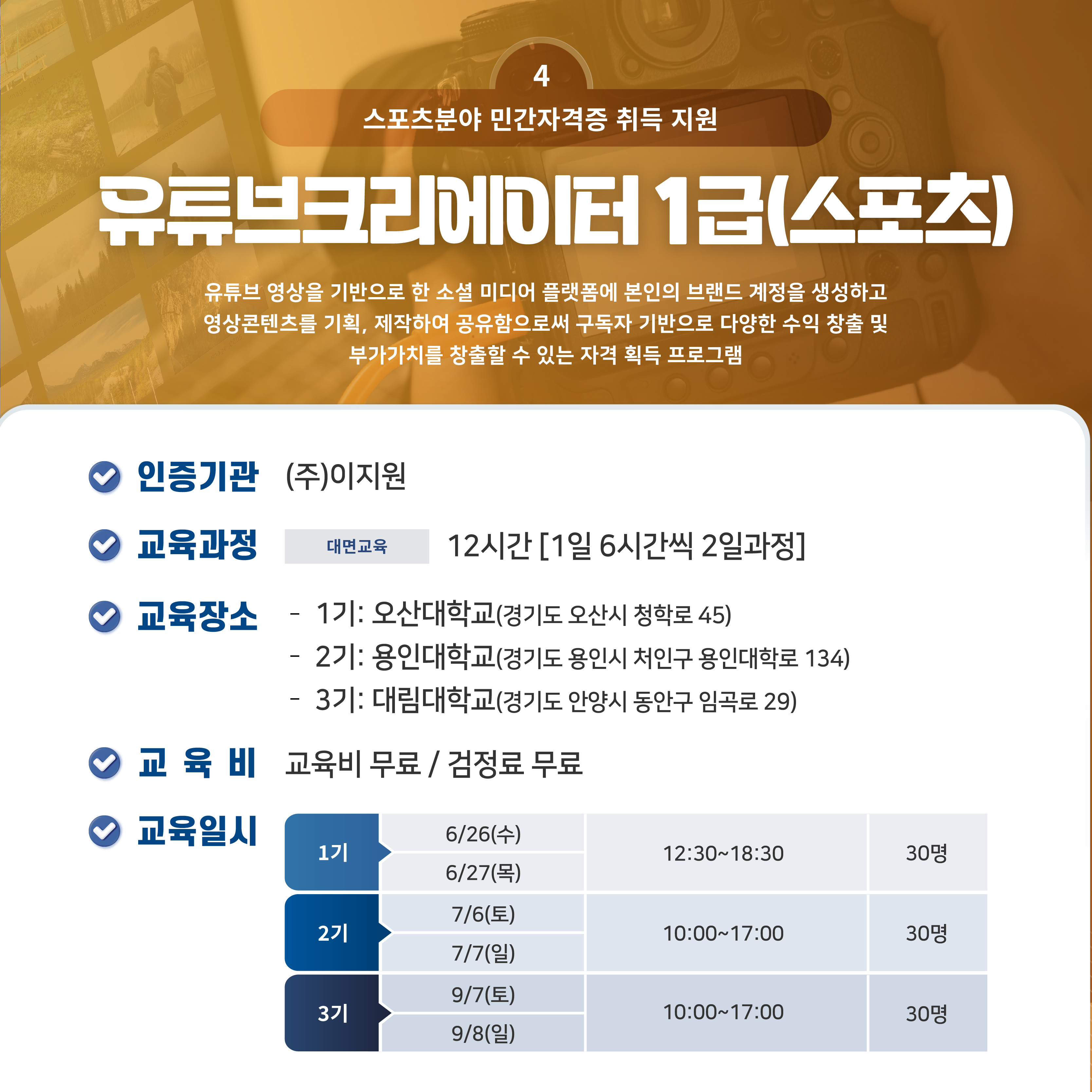 2024년 경기체육아카데미 스포츠분야 민간자격증 취득지원 운영 알림