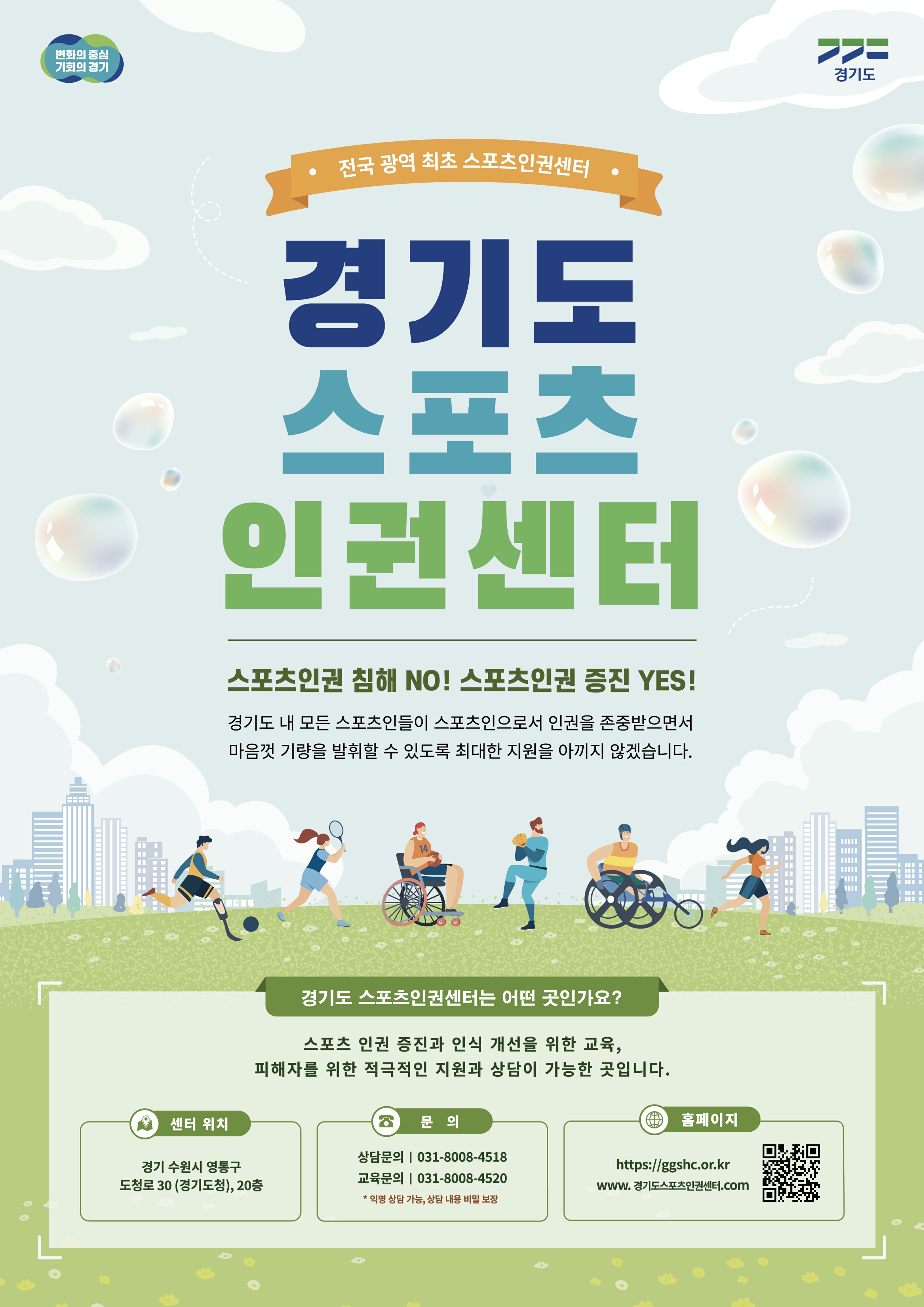 – 경기도 스포츠인권센터는 경기도 운동선수·체육인의 인권보호와 권익증진을 위하여 체육인권 증진사업을 수행하고 있습니다.