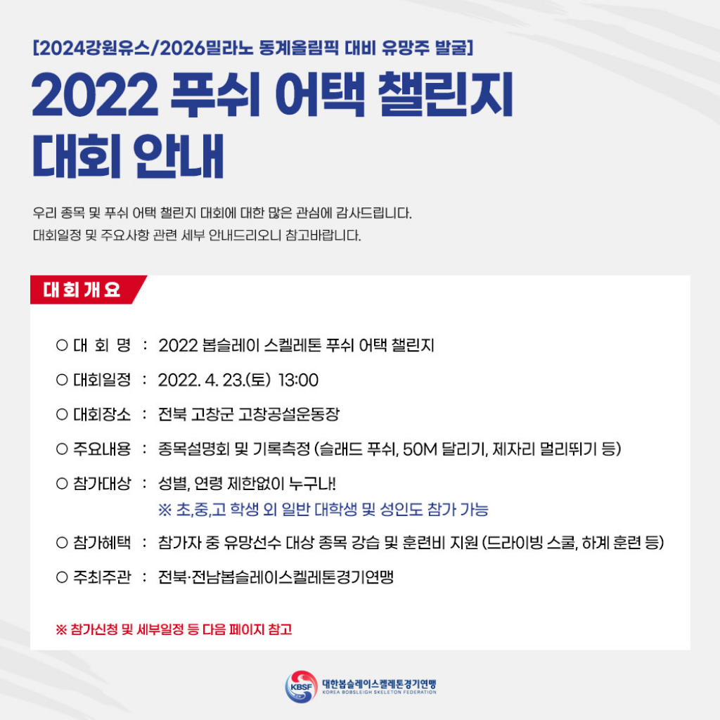 향후 참가 요강 확정시 본회 홈페이지를 통해 게시 및 종목단체별 문의시 확인하실 수 있습니다.